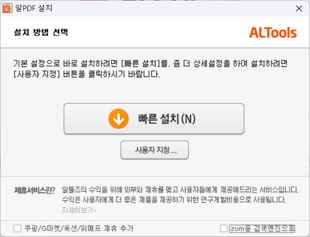 설치 시 다음 화면에서 알집, 알씨 추가 설치를 하지 않는 것이 현명합니다. 체크를 해제해 주세요.