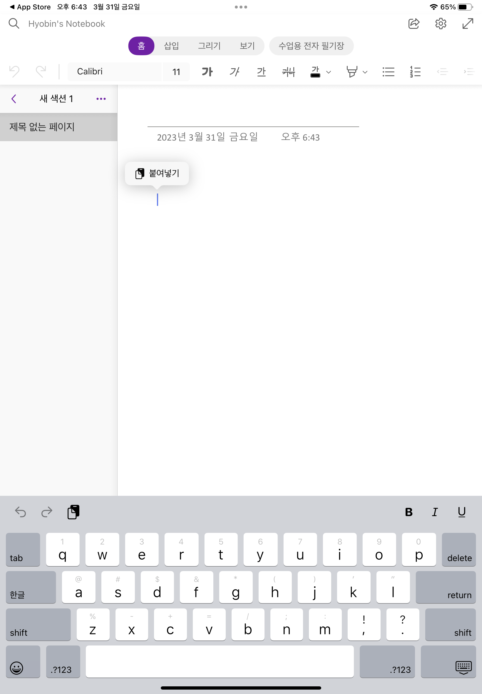 깜빡이는 커서 부분을 살짝 길게 누르고 메뉴에서 붙여넣기를 누르면 완벽하게 메모가 이식됩니다.