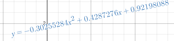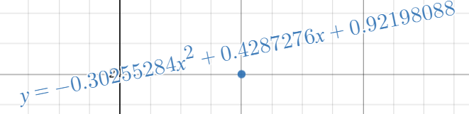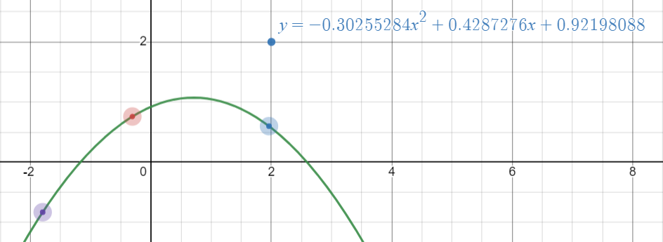 제가 사용할 그래프는 이전에 소개한 세 점을 지나는 이차함수입니다. 이 그래프를 그리기 위해 세 점의 좌표로부터 계산한 계수 \(a, b, c\)를 사용했었는데요, 이번에는 이를 이용하여 \(a, b, c\) 값을 실시간으로 반영하여 \(y=ax^2+bx+c\)꼴의 식을 화면에 표시해 보겠습니다.