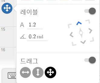 2. 위치 이동: 점 자체를 처음부터 (2,2)가 아닌 곳으로 설정해도 되지만, 아까 사용한 메뉴 아래쪽에서 '드래그'를 눌러 활성화시키면 점을 사방으로 움직일 수도 있고, 위아래나 좌우로만 움직이도록 지정할 수도 있습니다.