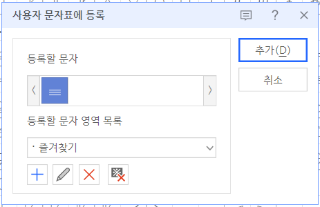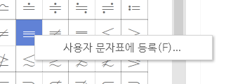 5. 필요한 기호를 추가하려면 문자표에서 원하는 기호를 오른쪽으로 클릭하여 '사용자 문자표에 등록'을 누릅니다.