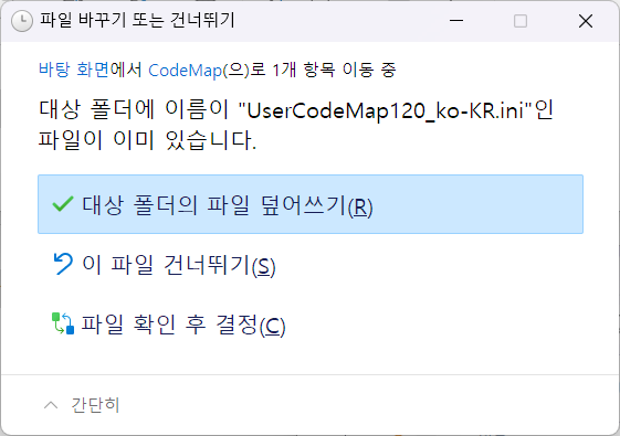 3. 여기 첨부한 파일을 다운로드하여 붙여넣어 줍니다. 이름이 같은 경우 대상 폴더의 파일 덮어쓰기를 선택합니다. 이름이 다른 경우 원래 파일은 다른 곳으로 옮겨 두고, 붙여넣은 파일의 이름을 해당 폴더에 있던 파일 이름으로 고쳐 줍니다.