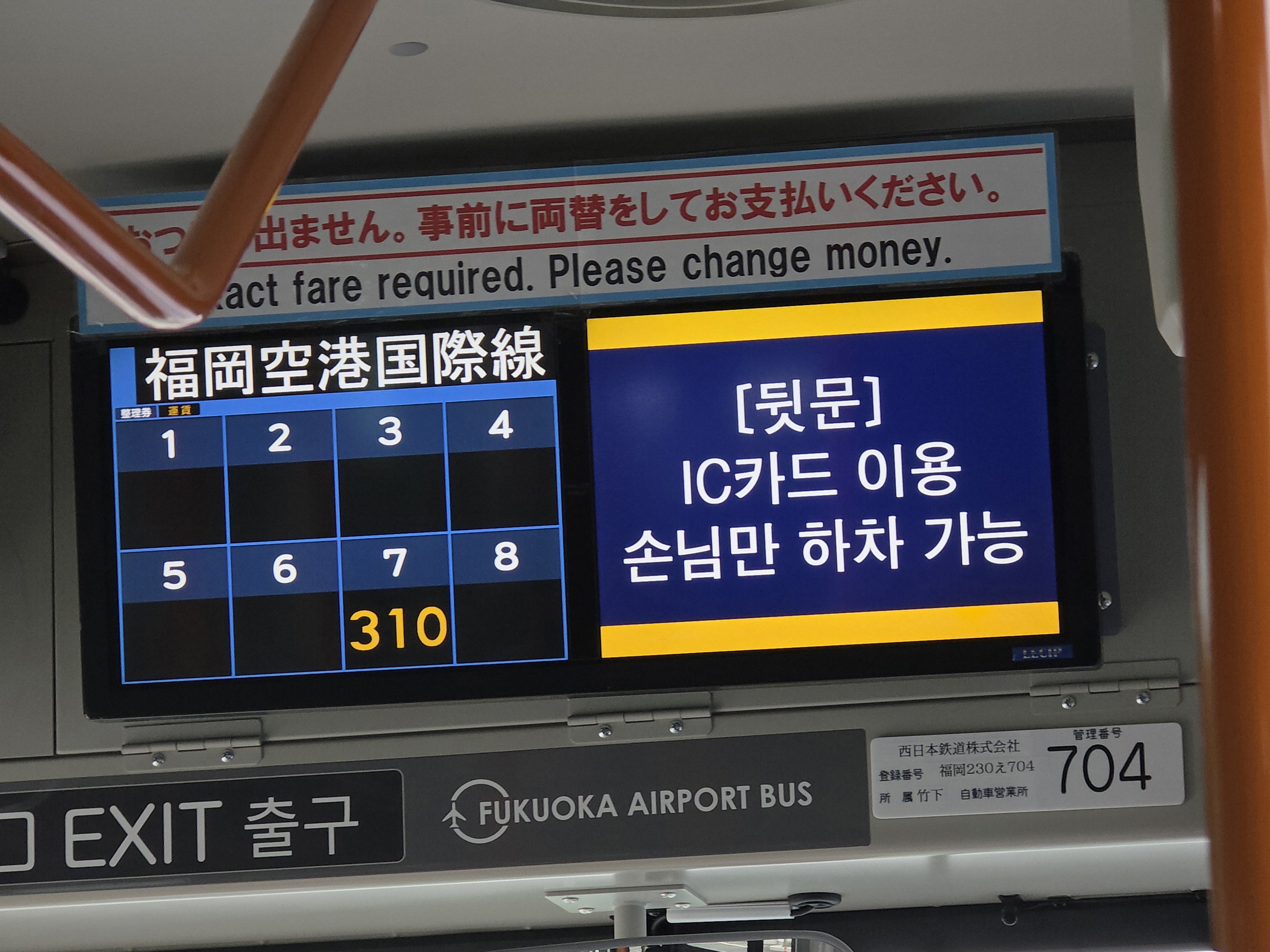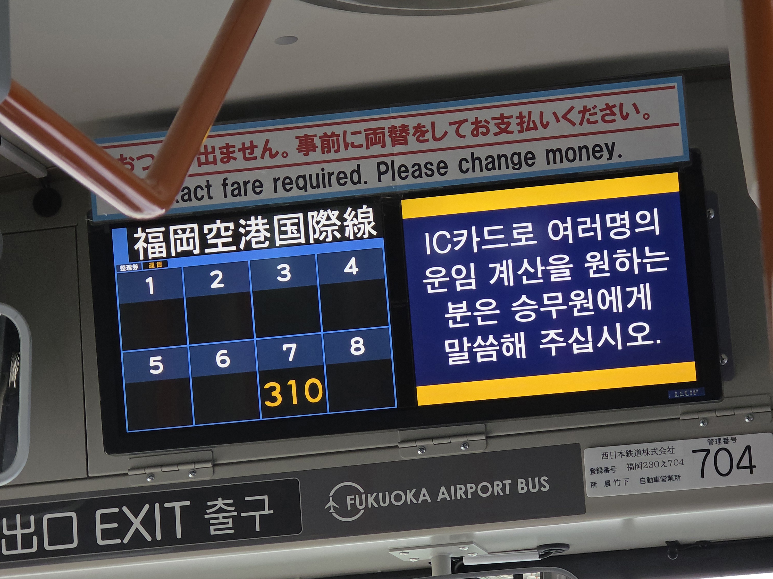 IC카드 한 장으로 여러 명이 이용할 수 있습니다. 뒷문에서 한 번 태그하고, 내릴 때는 앞문에서 명수를 말해 주세요. 한 명이면 그냥 태그, 두 명이면 '후타리데스', 세 명부터는 산닌, 요닌, 고닌, 로쿠닌, ... 입니다. 앞에서 내려야 하므로 탑승 대기는 반드시 왼쪽 줄에서 해 주세요.