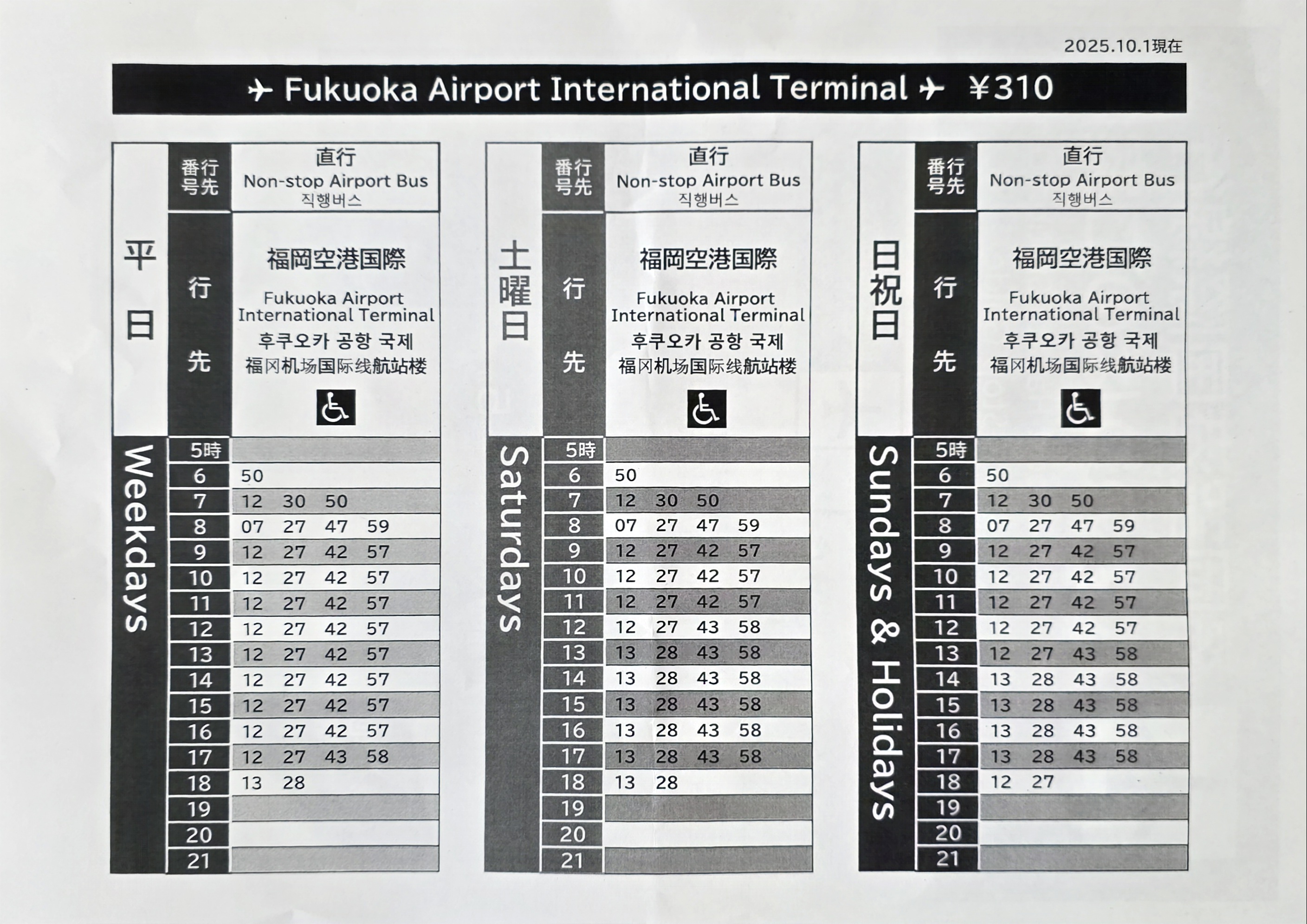 후쿠오카 국제공항행 버스정류장
