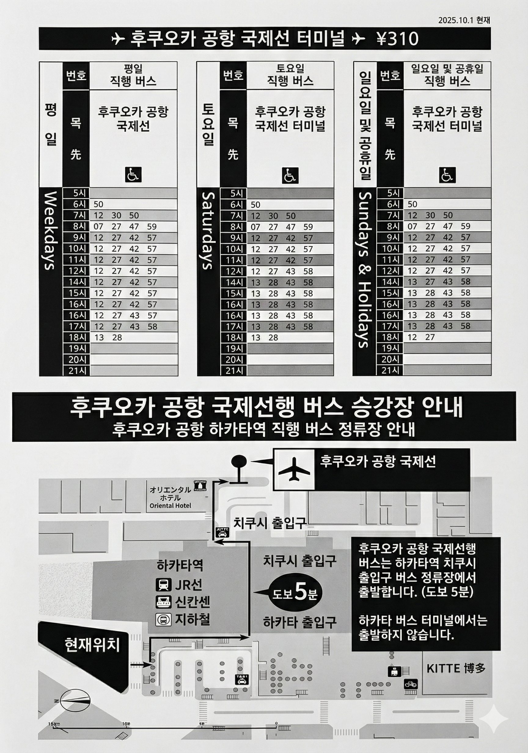 아직도 인터넷에는 하카타 버스터미널에서 타라는 정보가 많더군요. 낭패를 보지 않도록 꼭 확인하세요! 2026.1.1.현재 정보입니다. 탑승장소가 하카타역 동편 치쿠시구치 앞으로 바뀌었습니다. 구글 지도로는 여기입니다.